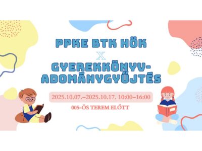 PPKE BTK HÖK X GYEREKKÖNYV-ADOMÁNYGYŰJTÉS  Gyerekkönyv-adománygyűjtés a jövő kis olvasóiért!  Szeretsz olvasni? Adj esélyt másoknak is, hogy felfedezzék a könyvek varázsát! 2025. október 7. és 17. között minden hétköznap 10:00 és…